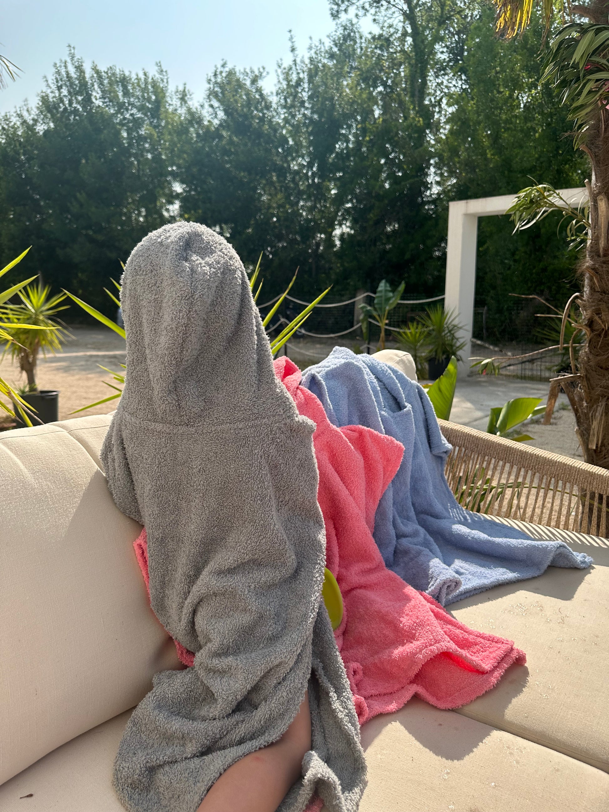 Naš dečiji pončo napravljen je od ultra nežnog, upijajućeg materijala koji brzo suši kožu i štiti od sunca i vetra nakon izlaska iz vode. Lagan, prostran i sa kapuljačom – idealan za plažu, bazen ili letnje avanture.