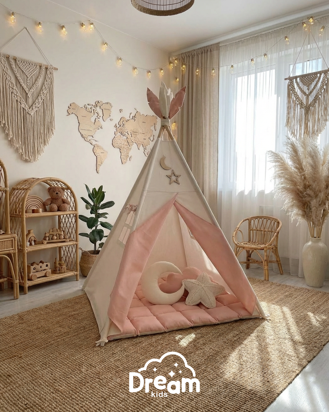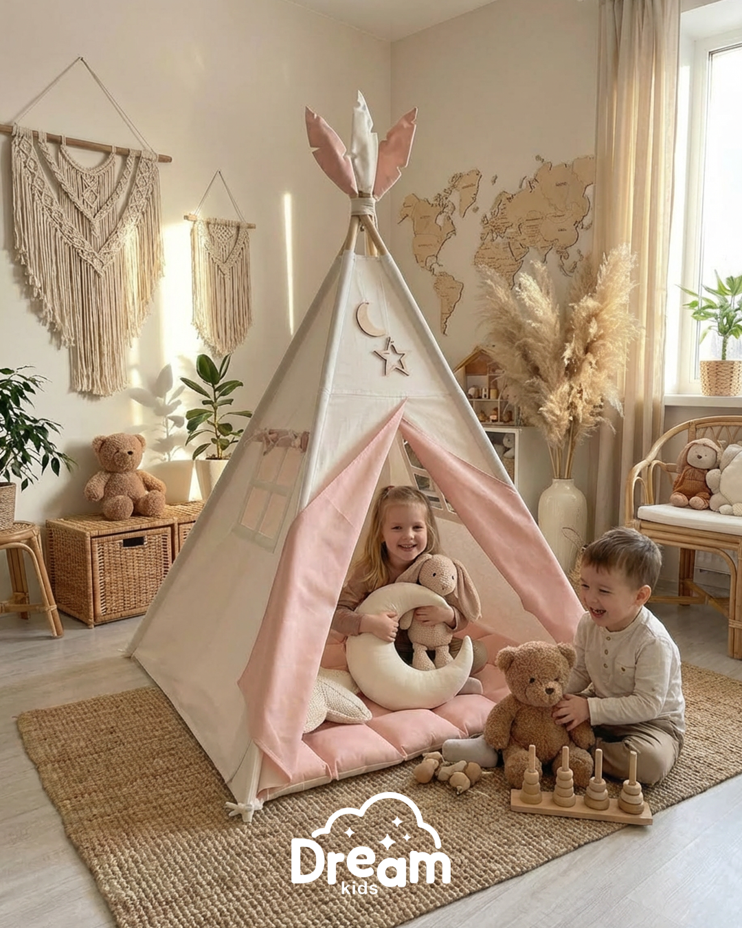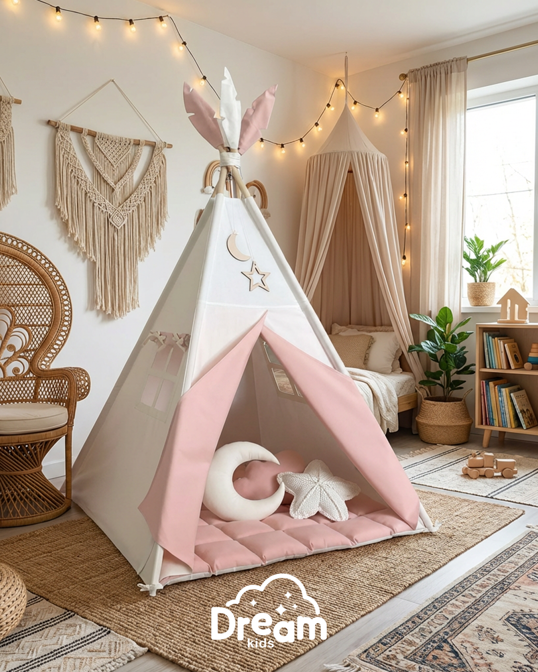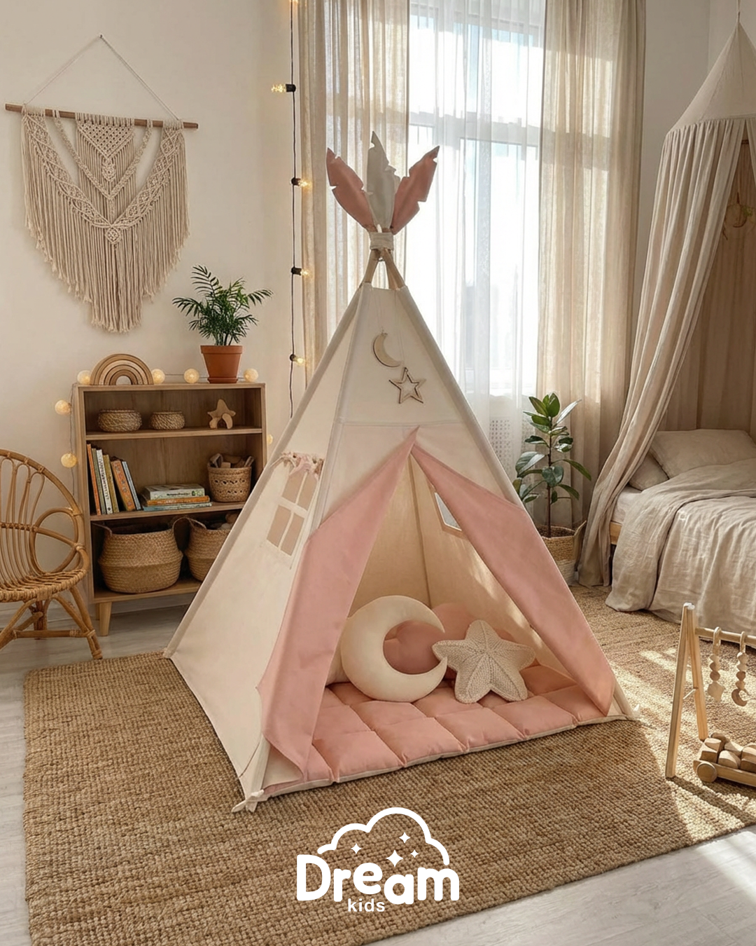 Naš šator je savršen kutak za igru, skrivanje, čitanje ili dremku. Ručno pravljen s ljubavlju, od 100% prorodnih materijala - čistog pamuka i čvrstog drveta - ovaj šator je nežan prema koži deteta i u potpunosti bezbedan za svakodnevnu upotrebu.