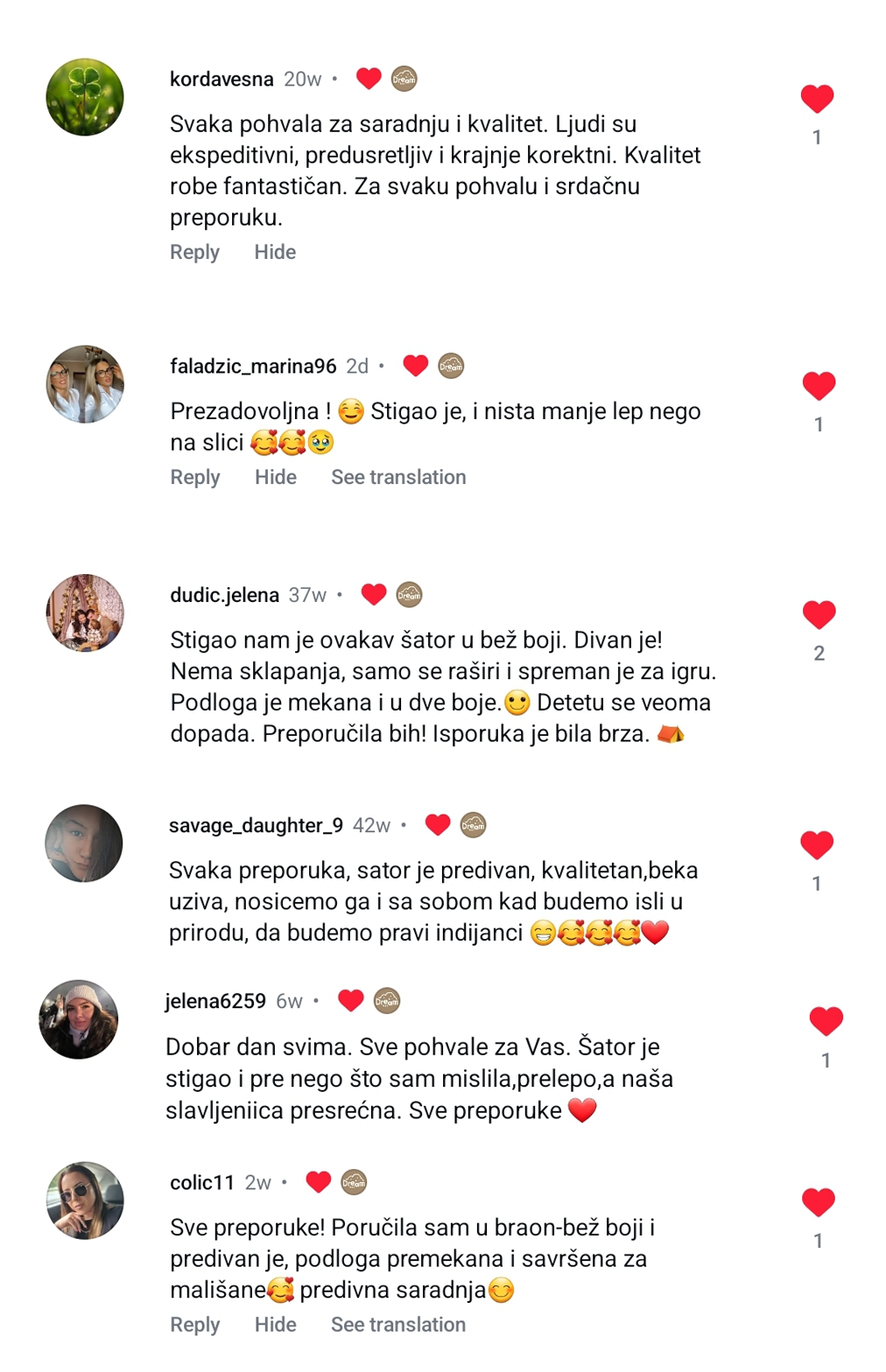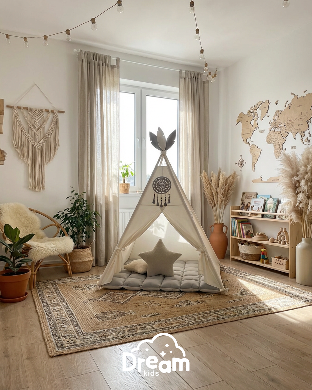 Naš šator je savršen kutak za igru, skrivanje, čitanje ili dremku. Ručno pravljen s ljubavlju, od 100% prorodnih materijala - čistog pamuka i čvrstog drveta - ovaj šator je nežan prema koži deteta i u potpunosti bezbedan za svakodnevnu upotrebu.